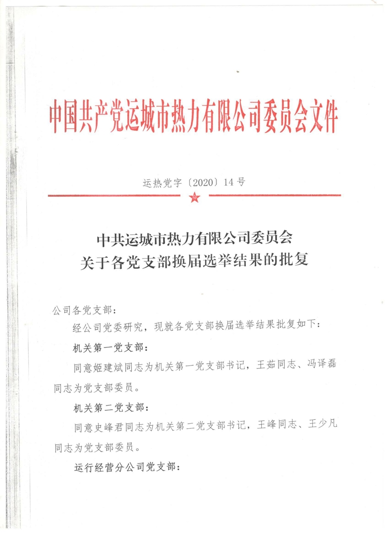 關于各黨支部換屆選舉結(jié)果的批復