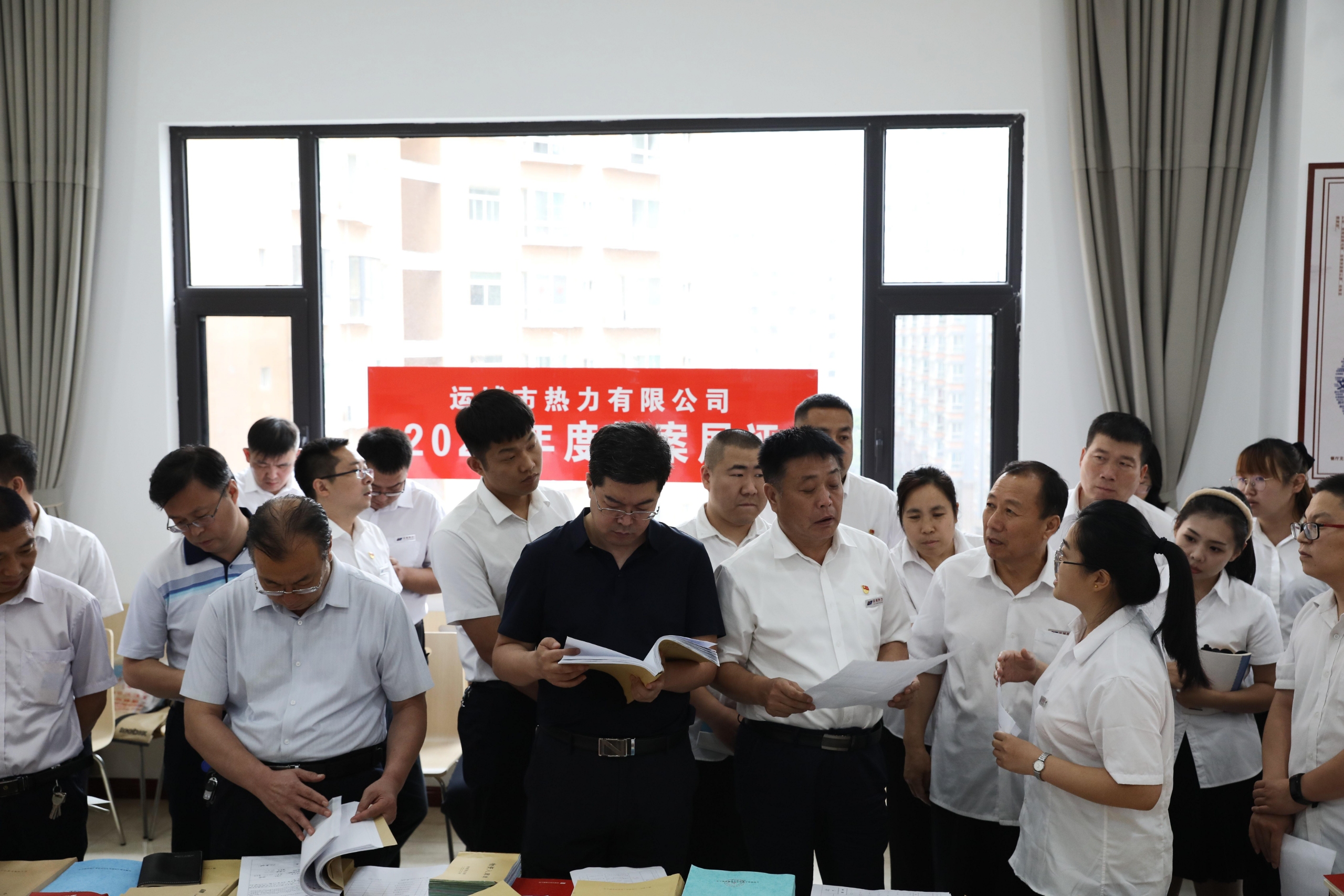 此次檔案展評(píng)活動(dòng)主要針對(duì)各部門年度主要業(yè)務(wù)檔案,并結(jié)合各部門崗位流程,重點(diǎn)展示有特色的、有亮點(diǎn)、能反映工作流程的業(yè)務(wù)臺(tái)賬及工作檔案;顒(dòng)現(xiàn)場(chǎng),各部門檔案解說員根據(jù)本部門的主要業(yè)務(wù)流程,對(duì)一年來所形成的臺(tái)賬、檔案進(jìn)行了詳盡的講解。馬福森耐心細(xì)致地聽講評(píng)、看資料,并不時(shí)向解說員詢問資料的真實(shí)性、完整性和關(guān)聯(lián)性。參會(huì)人員都認(rèn)真查看、仔細(xì)閱讀,相互學(xué)習(xí)探討新的工作經(jīng)驗(yàn)和方法。