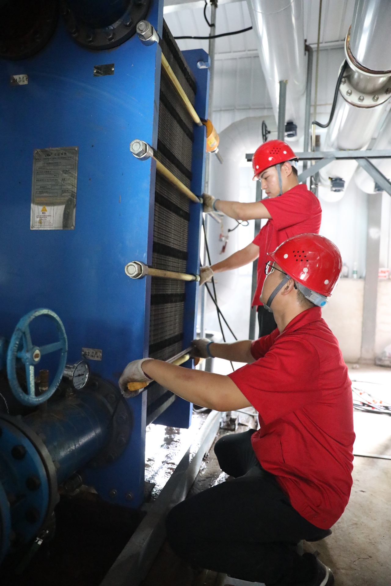 馬福森一行在紅旗街管網(wǎng)工程施工現(xiàn)場,對(duì)現(xiàn)場的施工人員表示慰問。紅旗街管網(wǎng)工程工期緊、任務(wù)重,自7月6日開工以來,一線人員放棄休息日,揮汗如雨奮戰(zhàn)在工程建設(shè)一線。馬福森詳細(xì)詢問了工程進(jìn)展情況,對(duì)現(xiàn)場安全施工情況、防暑降溫措施落實(shí)情況進(jìn)行重點(diǎn)關(guān)心,叮囑施工單位、監(jiān)理單位以及公司項(xiàng)目部人員要確保安全生產(chǎn)的前提下,保質(zhì)保量按時(shí)按期完成工程建設(shè); 在熱源廠管理分公司,馬福森一行從行政辦公區(qū)到生產(chǎn)區(qū),從10kv配電室到鍋爐零米,從脫硫脫硝區(qū)到煤源存放區(qū)……一邊查看現(xiàn)場安全防護(hù)措施情況,一邊了解保養(yǎng)質(zhì)量與進(jìn)度,他說:“要合理安排作業(yè)時(shí)間,要注重員工勞逸結(jié)合,確保維保工作穩(wěn)步推進(jìn)”;在地建換熱站、紫薇香河灣換熱站維修保養(yǎng)工作現(xiàn)場,他對(duì)現(xiàn)場人員高溫下堅(jiān)守的工作精神給予肯定,并對(duì)維修保養(yǎng)的工作給予了現(xiàn)場要求,他說:“夏季保養(yǎng)工作對(duì)供熱系統(tǒng)來講尤為重要,大到板片清洗、閥門更換,小到電氣除塵、儀表校對(duì)、水泵螺栓緊固等,做到不漏檢、不漏保,確保冬季運(yùn)行安全平穩(wěn)。