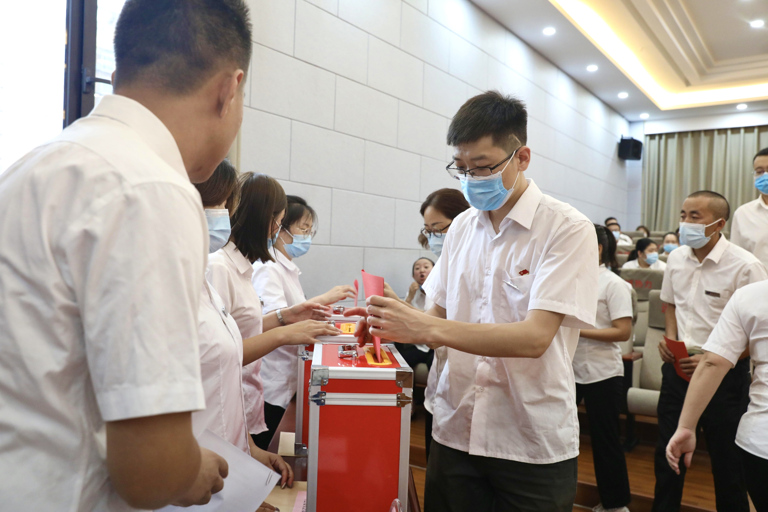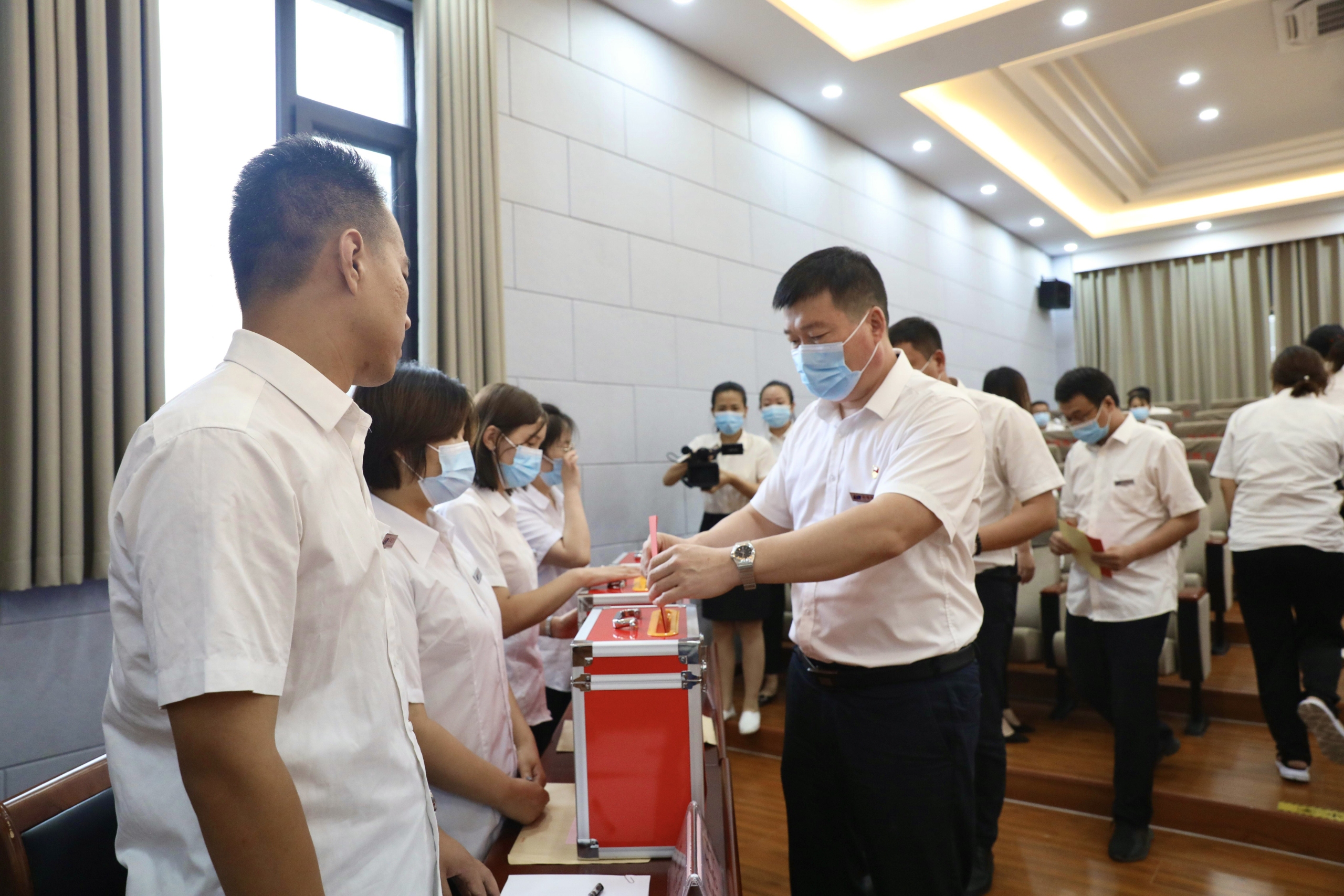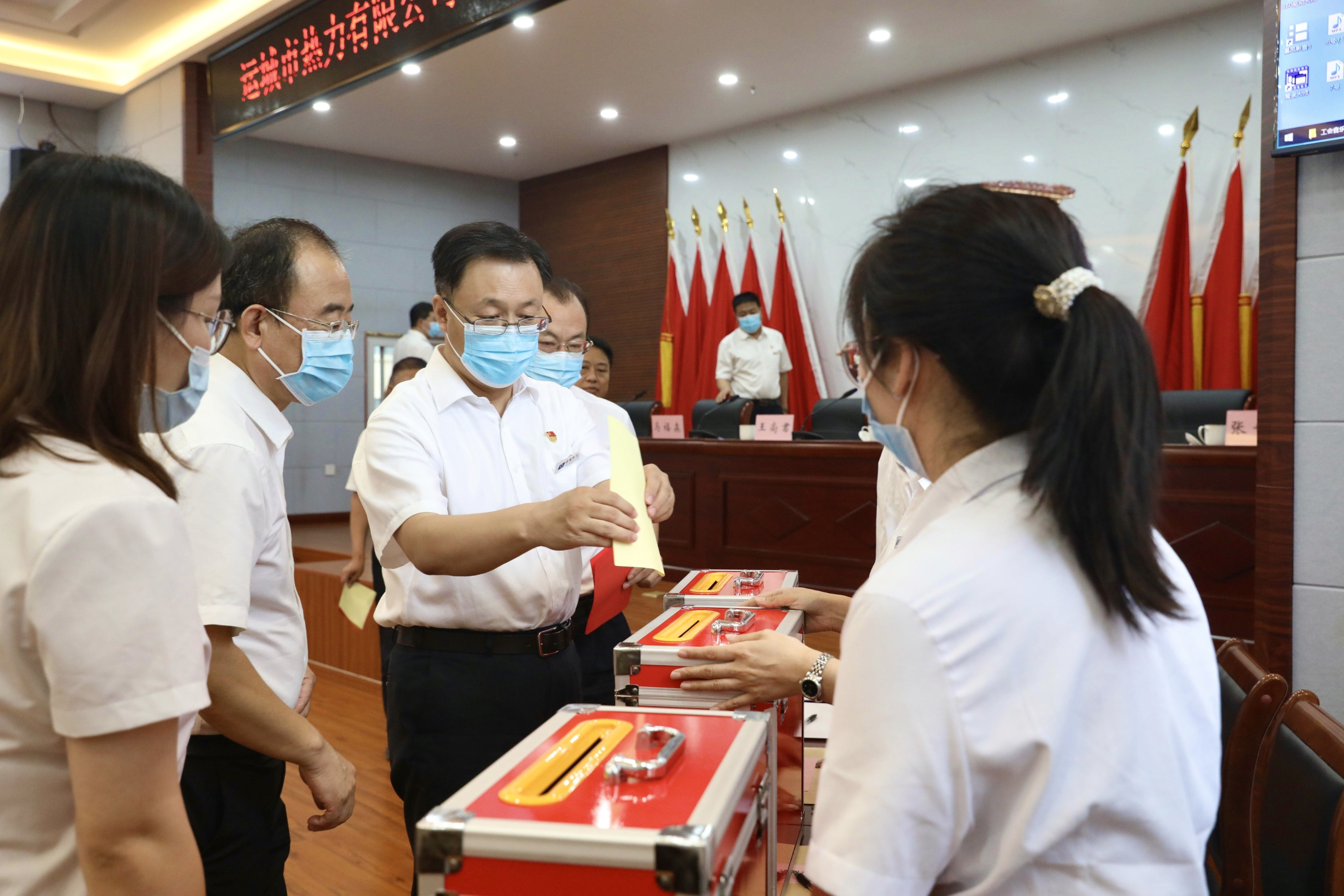 8月12日下午,公司工會(huì)在機(jī)關(guān)六樓會(huì)議室召開第三次會(huì)員代表大會(huì),選舉產(chǎn)生第三屆工會(huì)委員會(huì)、經(jīng)費(fèi)審查委員會(huì)及女職工委員會(huì)。公司黨委書記、董事長馬福森出席會(huì)議并作重要講話。會(huì)議由工會(huì)籌備領(lǐng)導(dǎo)組常務(wù)副組長張世科主持,大會(huì)應(yīng)到會(huì)員代表56名,實(shí)到56名。為確,F(xiàn)場參會(huì)人數(shù)滿足疫情防控要求,會(huì)場人員間隔一米就座,全程佩戴口罩。