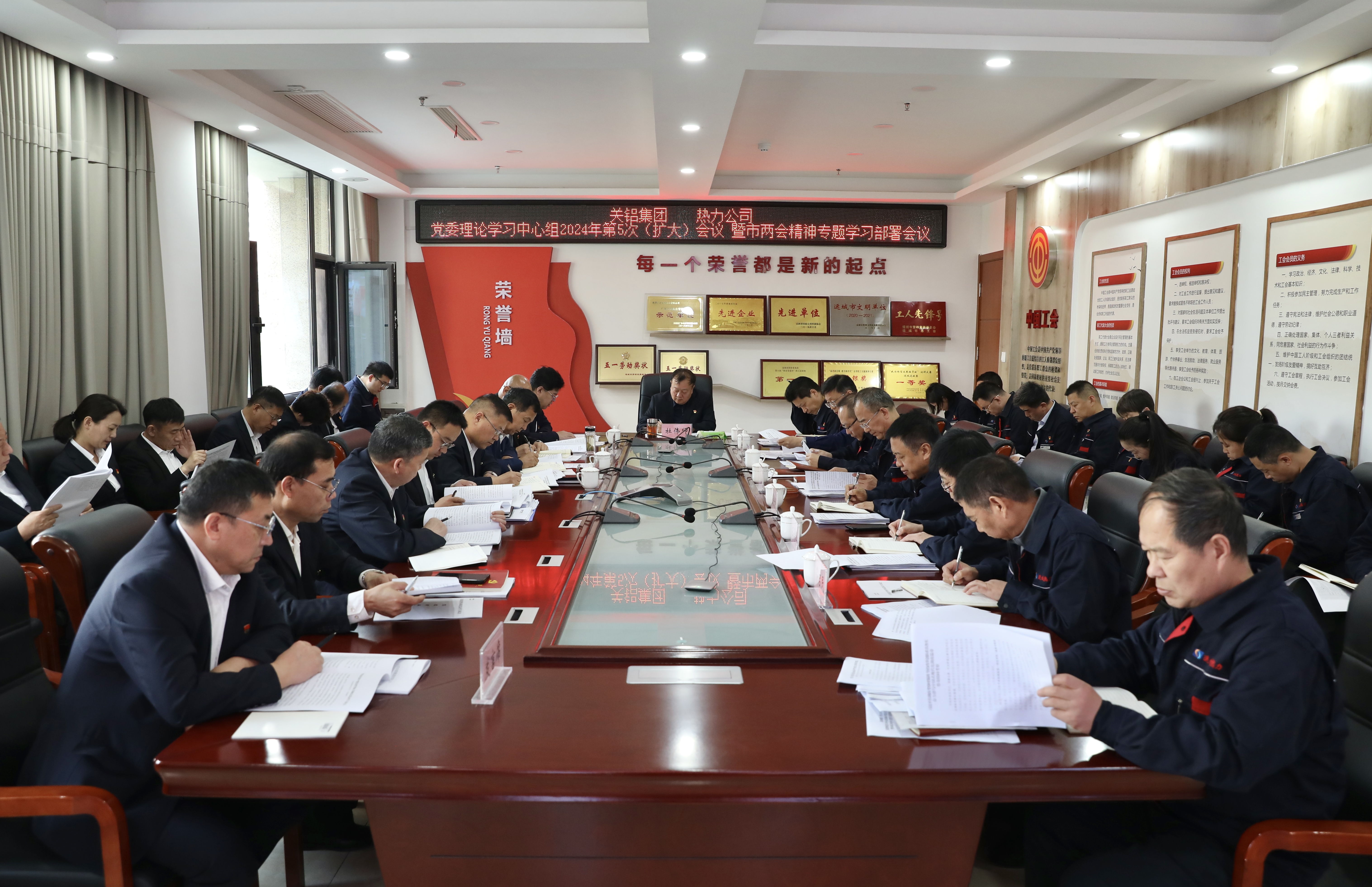4月7日上午,公司聯(lián)合關(guān)鋁集團(tuán)召開黨委理論學(xué)習(xí)中心組2024年第5次(擴大)會議暨市兩會精神專題學(xué)習(xí)部署會議。黨委書記、董事長杜偉師主持。關(guān)鋁集團(tuán)、熱力公司領(lǐng)導(dǎo)班子成員、各黨支部書記、中層管理人員參加會議。
