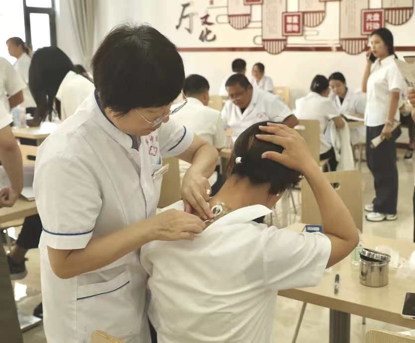 講座余溫未散,干部職工在工作人員的引導(dǎo)下,有序前往各診區(qū)開展診療咨詢,F(xiàn)場設(shè)有中醫(yī)內(nèi)科、外科、心病科、腦病科、治未病科等15個科室20余名資深醫(yī)師為職工們面對面、一對一診療。醫(yī)護(hù)人員們化身為健康衛(wèi)士,耐心傾聽職工的健康問題,仔細(xì)詢問病史,把脈問診、答疑解惑,針對每個人的身體狀況與生活習(xí)慣給出相應(yīng)的健康指導(dǎo)和治療建議,為每位職工開出了“良方”,獲得廣大職工一致好評。此次義診服務(wù)還涵蓋了三伏貼、耳穴貼壓、穴位貼敷等中醫(yī)特色體驗(yàn)。