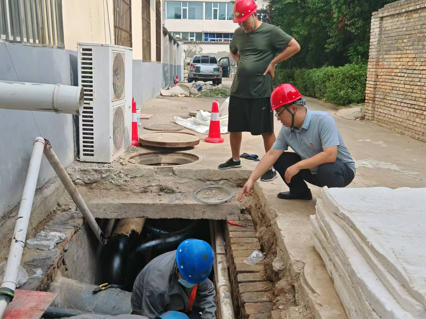 2024年5月,受大雨影響,與中銀路供熱管網(wǎng)項(xiàng)目毗鄰的原有雨水舊管出現(xiàn)大量漏水,雨水流至我方溝槽內(nèi),張博得知消息后,第一時(shí)間冒雨趕往現(xiàn)場(chǎng),聯(lián)系施工方對(duì)施工現(xiàn)場(chǎng)排水系統(tǒng)進(jìn)行檢查和清理,布置遮雨布,對(duì)施工材料和設(shè)備進(jìn)行妥善存放和保護(hù),對(duì)邊坡、溝槽等部位進(jìn)行全面的安全檢查,確保施工現(xiàn)場(chǎng)安全。面對(duì)大雨對(duì)施工的影響,張博說(shuō)“如果雨大的話,即便把水都排干,還是得等泥濘的管溝干一些才具備施工條件,這就會(huì)耽誤一兩天工期,真的是越下雨越操心”。為了預(yù)防暴雨影響,他安排專(zhuān)人關(guān)注天氣預(yù)報(bào),提前做好暴雨預(yù)警和防范工作,帶領(lǐng)項(xiàng)目部全體人員提前準(zhǔn)備好水泵、發(fā)電機(jī)、遮雨布、沙袋等防汛設(shè)備,如果遇到大雨,就用鏟車(chē)在管溝旁邊堆土,防止雨水漫進(jìn)管溝,影響工程施工進(jìn)度。