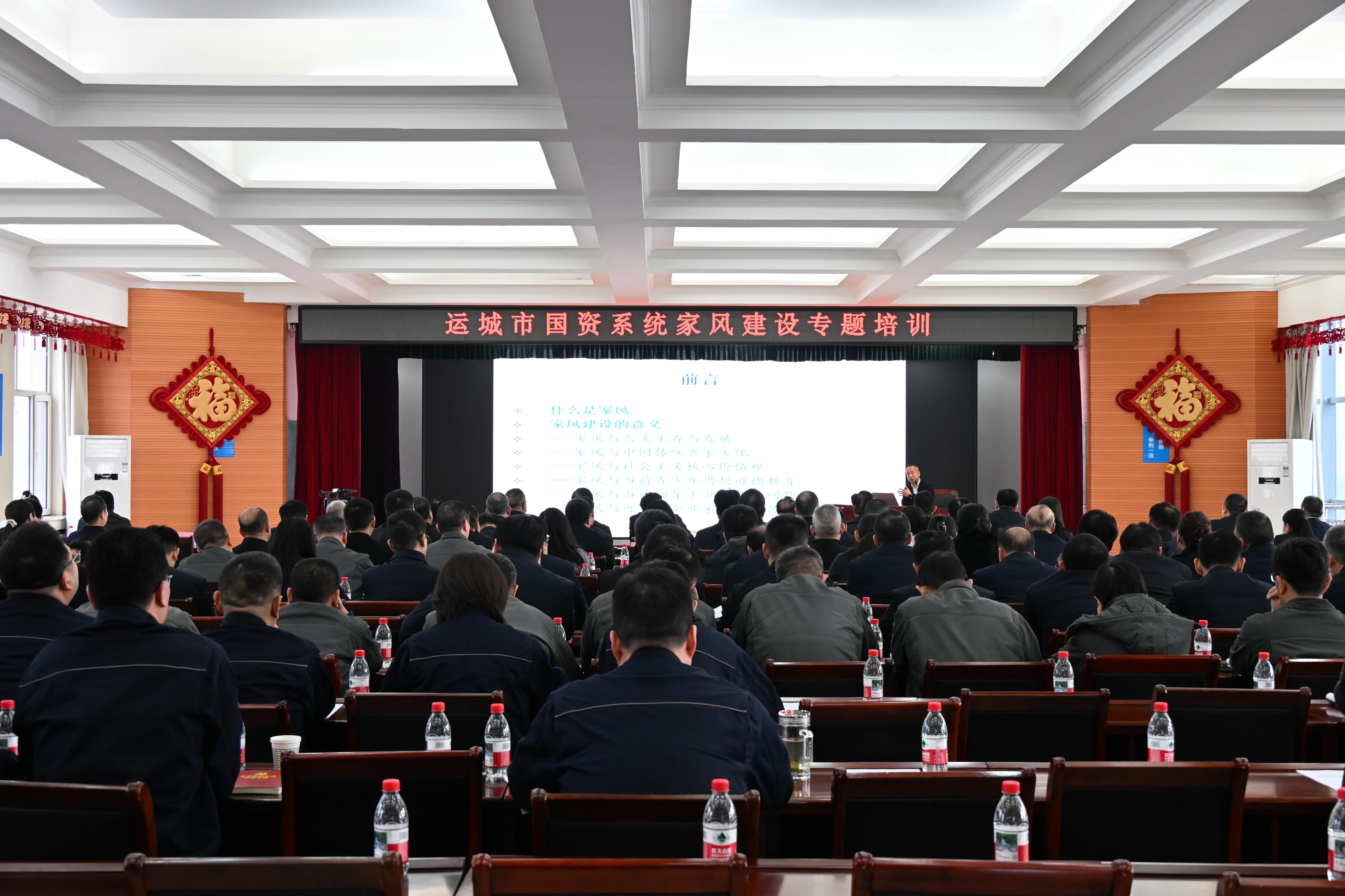 為深入貫徹落實習近平總書記關于注重家庭家教家風建設的重要論述精神,持續(xù)深化新時代廉潔文化建設,全面提升黨員干部作風能力,結合公司年度黨員教育工作安排,2月27日,由市國資委主辦、公司承辦的市國資系統(tǒng)家風建設專題培訓在城西熱源廠順利舉辦。此次特邀吉林省宗教文化協(xié)會副會長、長春大學網絡國學院副院長于天罡教授作專題培訓。市工信局黨組副書記、市國資委黨委專職副書記劉軍虎和市工信局(市國資委)黨組成員(黨委委員)、市紀委監(jiān)委駐市工信局紀檢監(jiān)察組組長張衛(wèi)宏出席活動。市國資系統(tǒng)黨員領導干部及部分家屬代表共同參加培訓,在中華優(yōu)秀傳統(tǒng)文化的浸潤中接受了一次深刻的思想淬煉和精神洗禮。