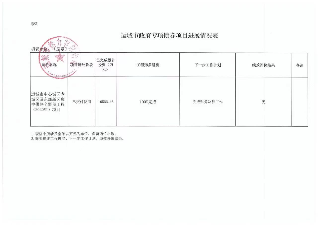 運(yùn)城市政府專項(xiàng)債券項(xiàng)目進(jìn)展情況表